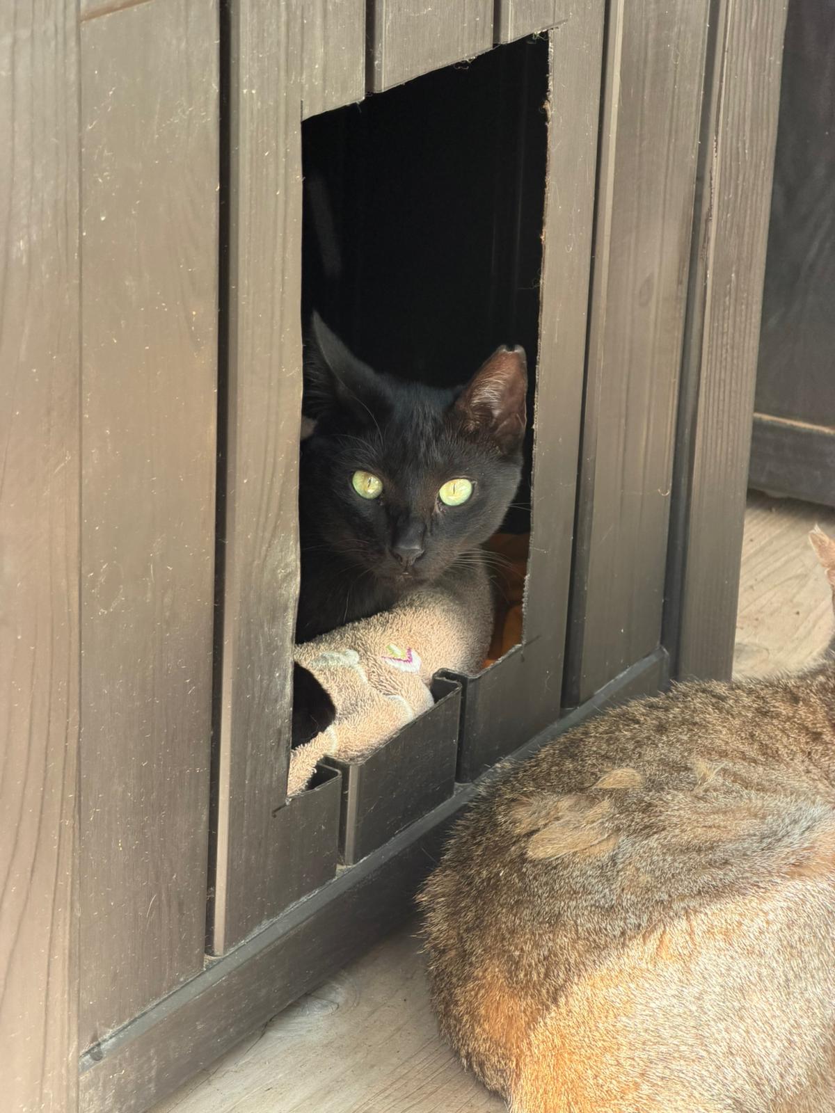 Aquí vivim uns quants gatets molt especials 💕 És l’única colònia totalment tancada que gestiona l’associació: un raconet segur i tranquil, ideal per a gatets sènior o amb problemes de salut i de mobilitat.