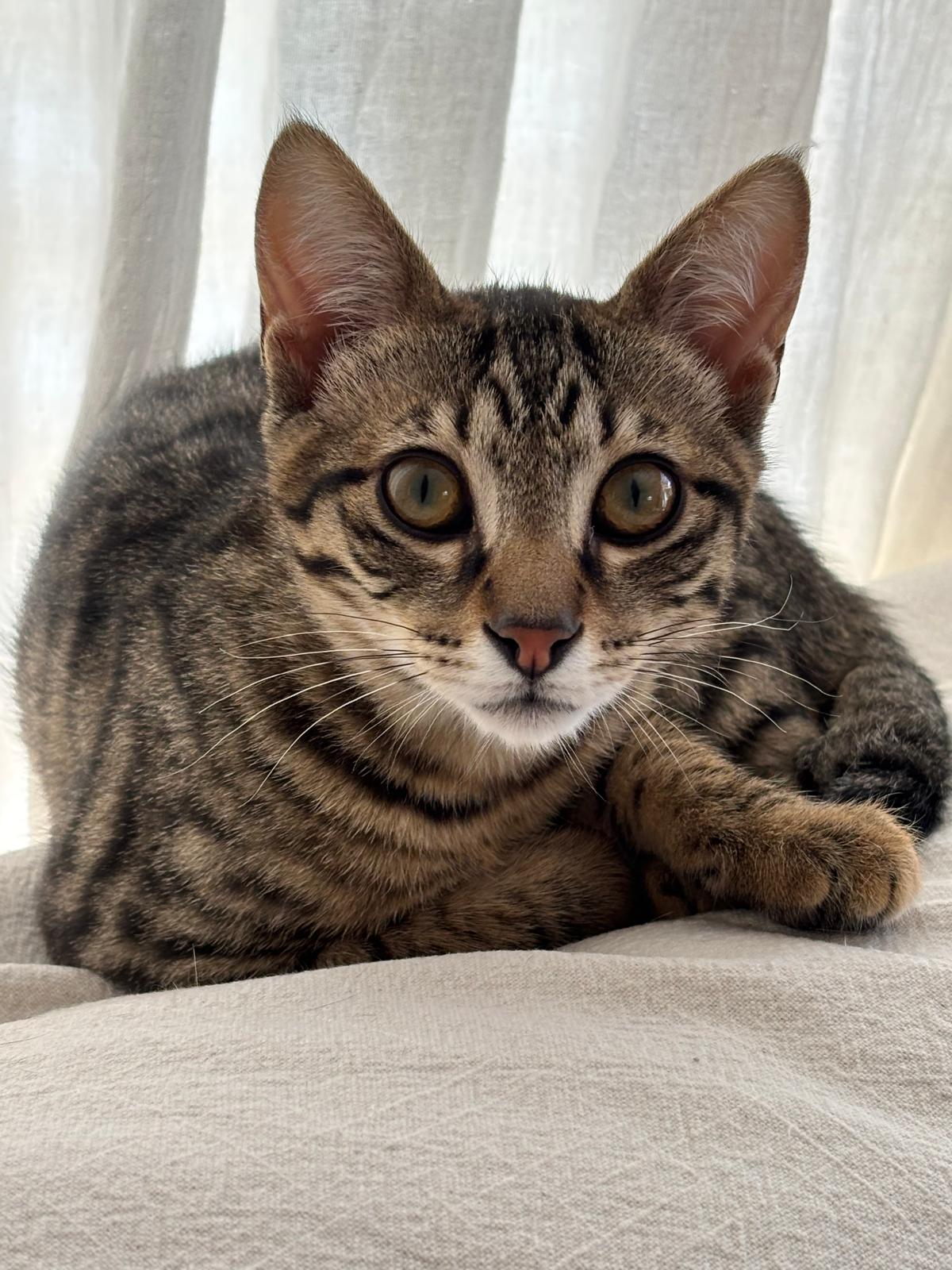 La Xúlia és la més atrevida del tàndem: activa, entremaliada i molt espavilada. Sempre està ideant noves maneres de jugar, explorar i fer alguna trapelleria. Té aquella energia viva que omple la casa i arrenca somriures.
