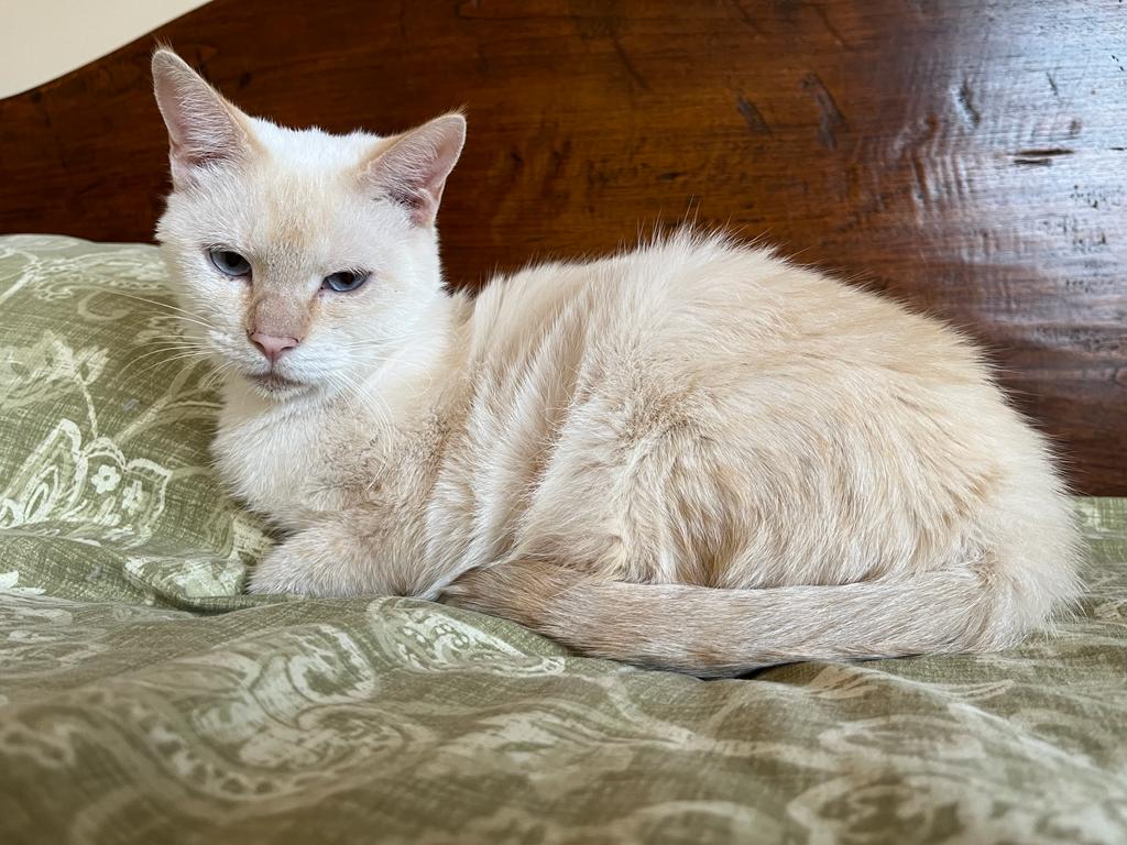Va ser com un àngel caigut del cel. Aquesta gateta blanca va ser trobada al carrer embarassada, però tot i haver estat abandonada, ella ens va brindar amb tot el seu amor. No li agradava estar sola i ens demanava que ens quedéssim i li acariciem tota l'estona. Una setmana després va donar a llum 6 meravellosos gatets a les nostres mans. Encara avui els segueix cuidant com el primer dia, però ja va sent hora que trobi la seva llar definitiva. Li brindes una oportunitat a aquesta increïble mare?