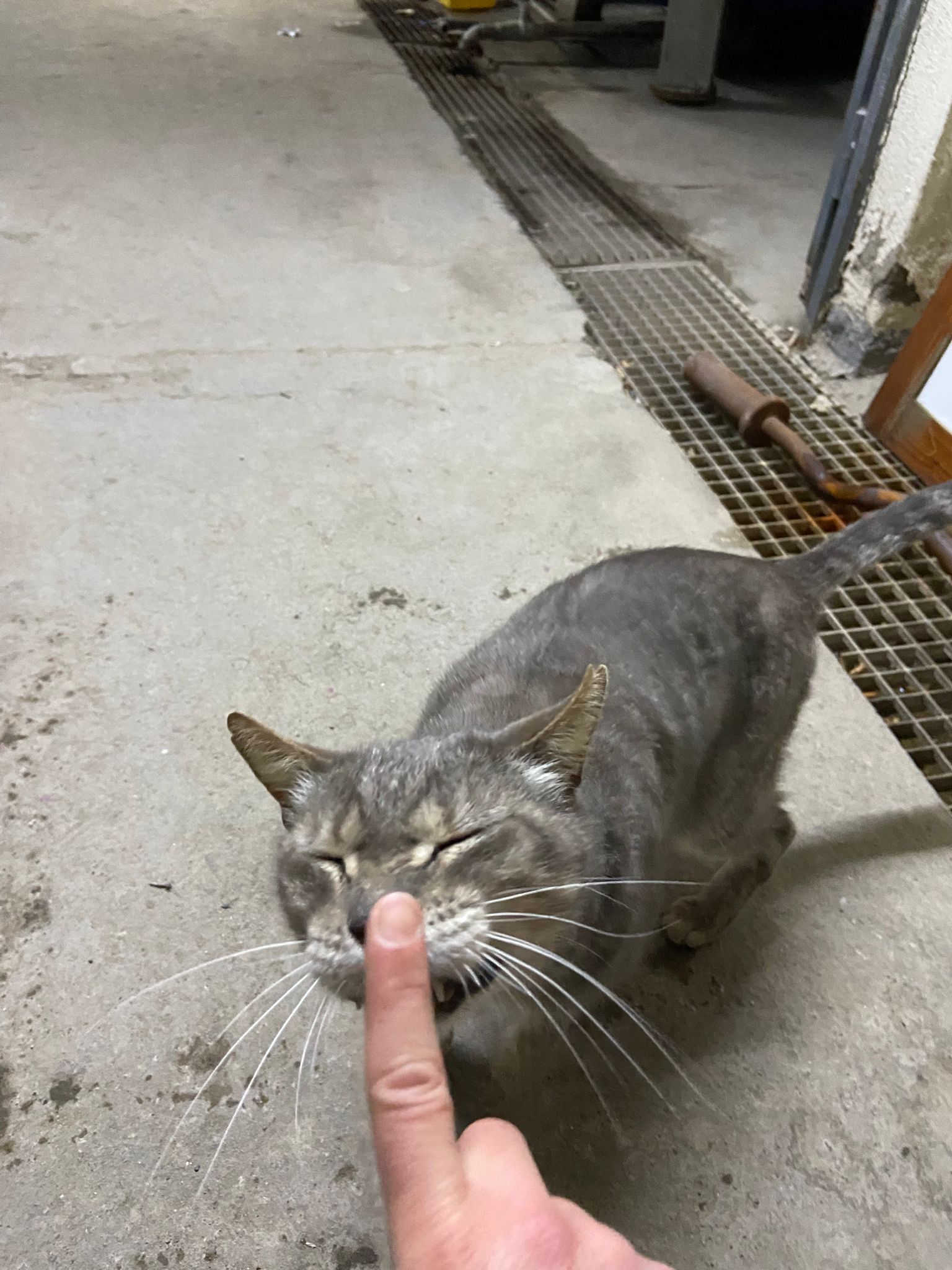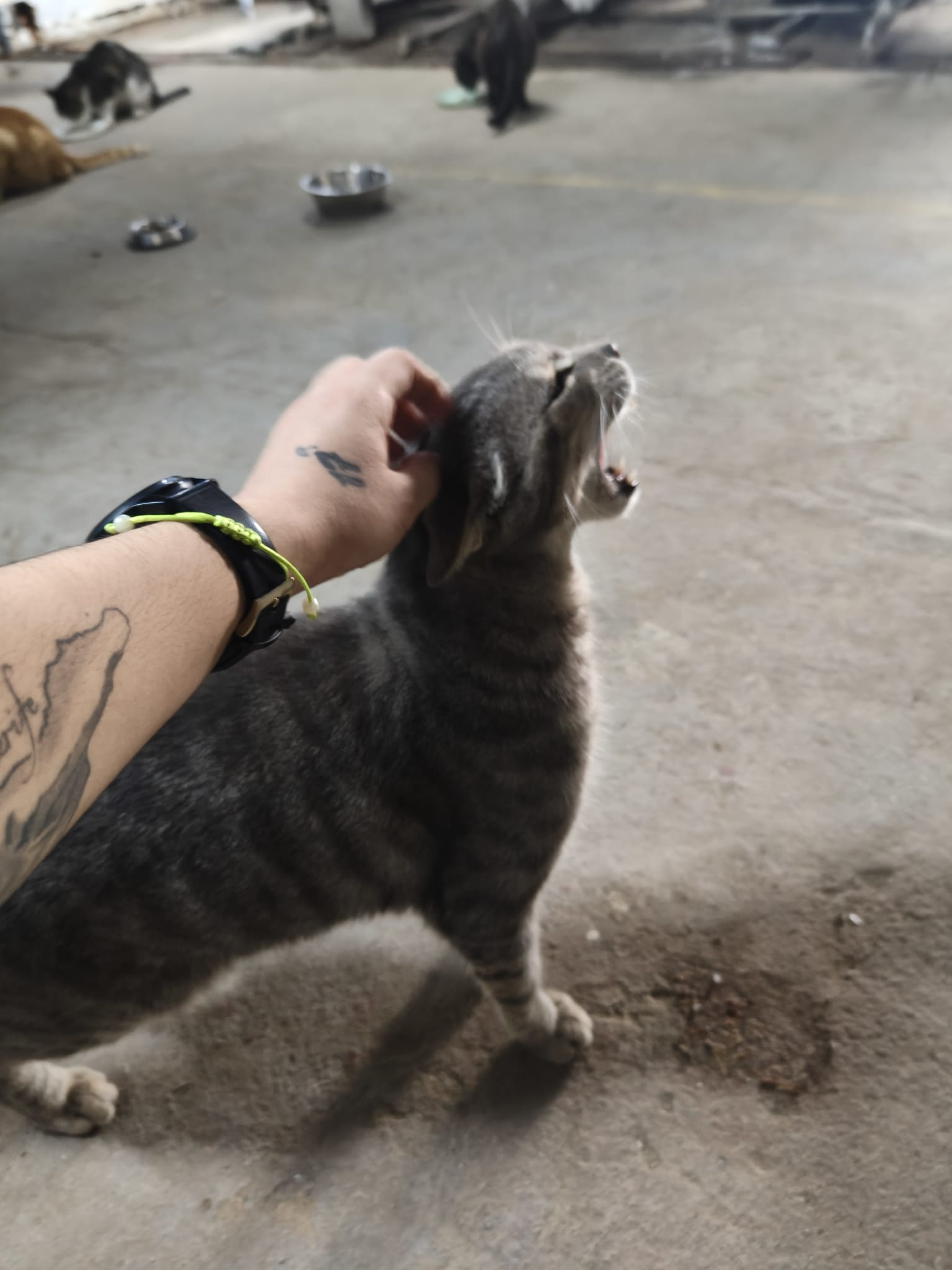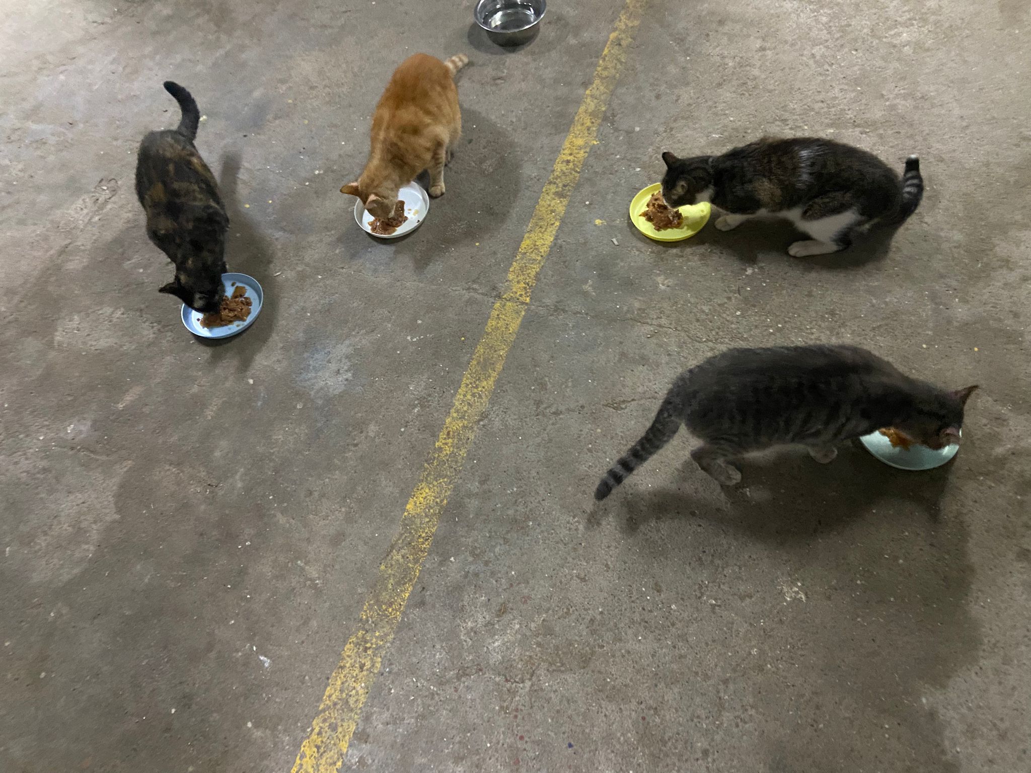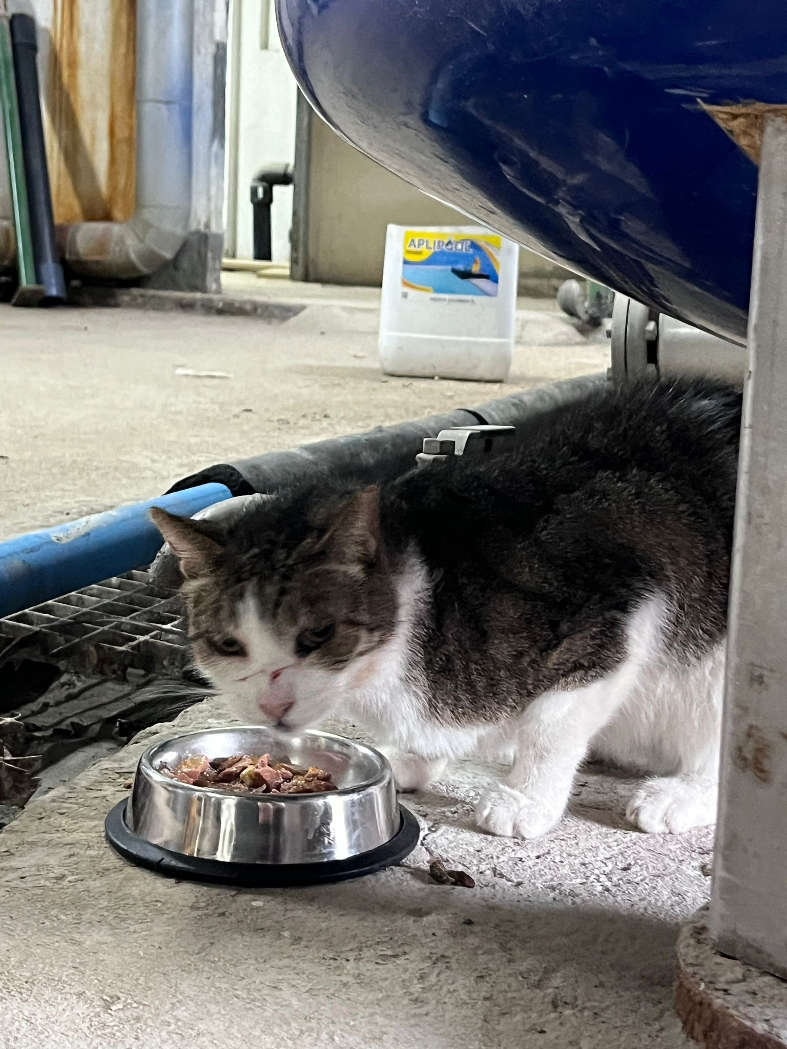 En Pinocho (gat gris claret) és, sens dubte, el més mimós de la colònia. Maulla tan bon punt et veu i sempre espera les seves carícies 😻.