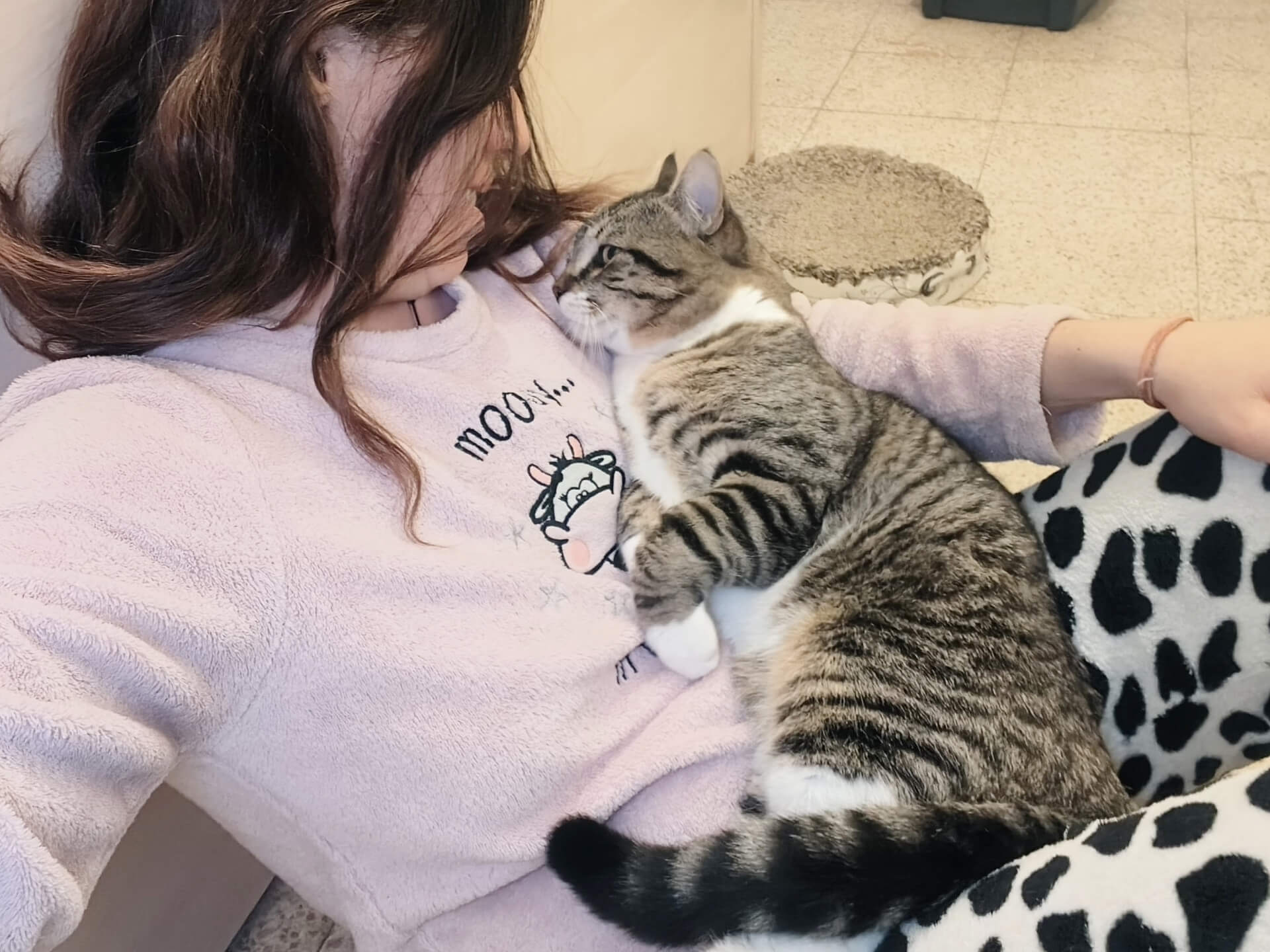 Alimentant una de les nostres colònies, va aparèixer un gat desconegut per a la nostra companya demanant mims… era un abandó més . No va dubtar en recollir-lo i li hem posat de nom Gospel. És un gat molt sociable, afectuós, que li encanten les manyagues… especialment a la panxeta .