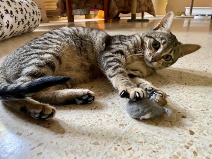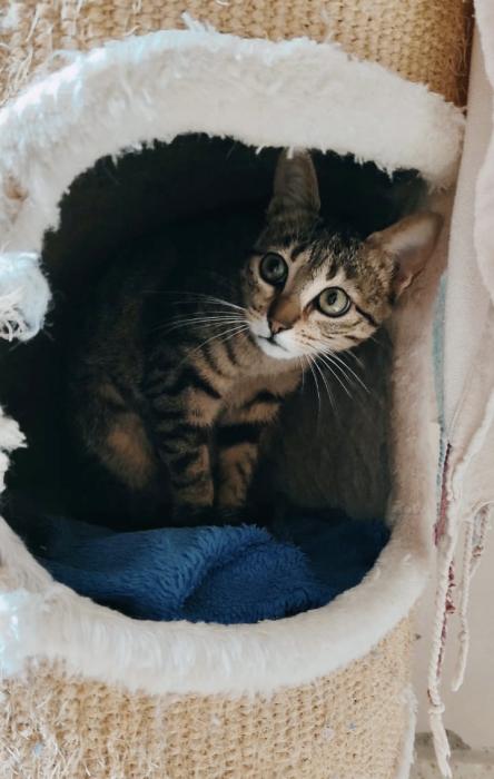 Soc una gateta una mica tímida al principi però molt afectuosa. Quan vaig arribar al refugi amb el meu germà Malik estava una mica malalta dels ullets, però gràcies a la cura dels voluntaris em vaig curar molt ràpidament i ara l'únic que vull són mimitos i molta llauneta.M'encantaria trobar una família que accepti la meva manera de ser i que em doni la tranquil·litat que necessito per adaptar-me i viure feliç. M'adoptes?