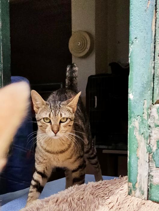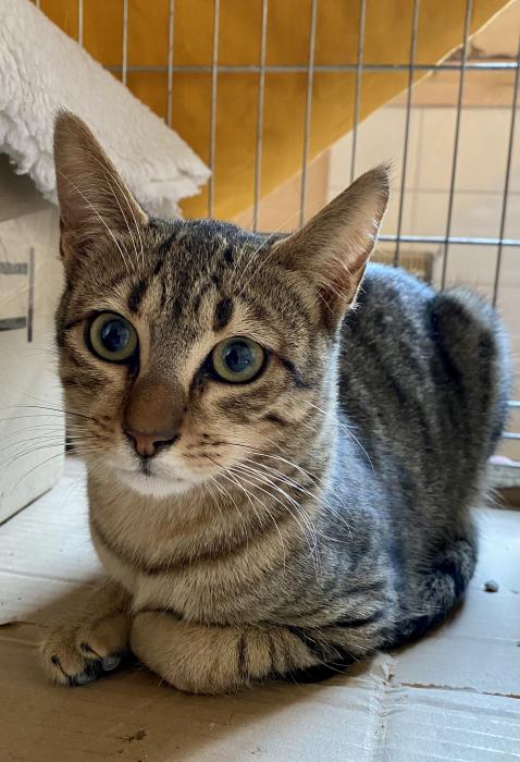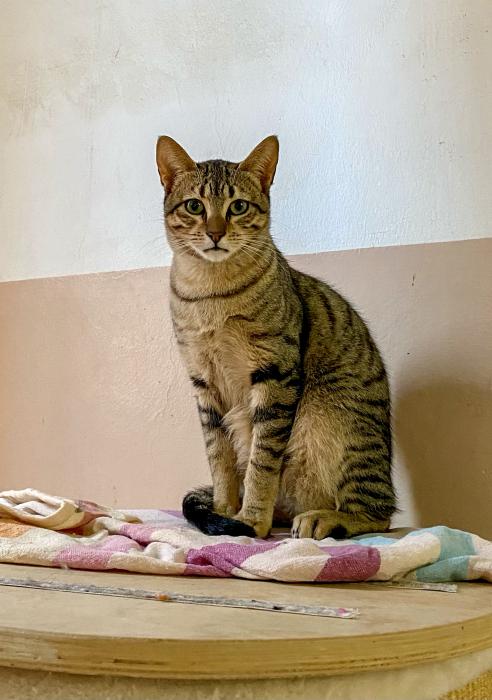 El meu nom és Malik i vaig arribar al refugi uns dies després que la meva germana Lisbeth. Al principi era tímid i poruc però ara soc súper afectuós. M'encanta la llauneta i jugar amb els altres gatets, vols conèixer-me?