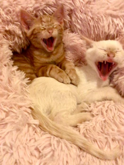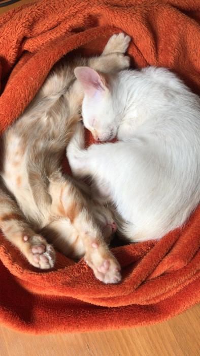 Som en Floc i en Mel, dos germans molt units i amb un vincle molt especial. Ens encanta jugar molt entre nosaltres i fer-nos emboscades, però també ens encanta que juguin amb nosaltres. Busquem una família que vulgui donar-nos aquestes estones de jocs diaris, la nostra doble ració de llauneta i molts mimos. Perquè després de tanta activitat, dormim molt i molt juntets i, si és damunt d'unes cames o al llit de la nostra futura família, encara millor. Ah! I ens encanta ronronejar. Ens vols conèixer?