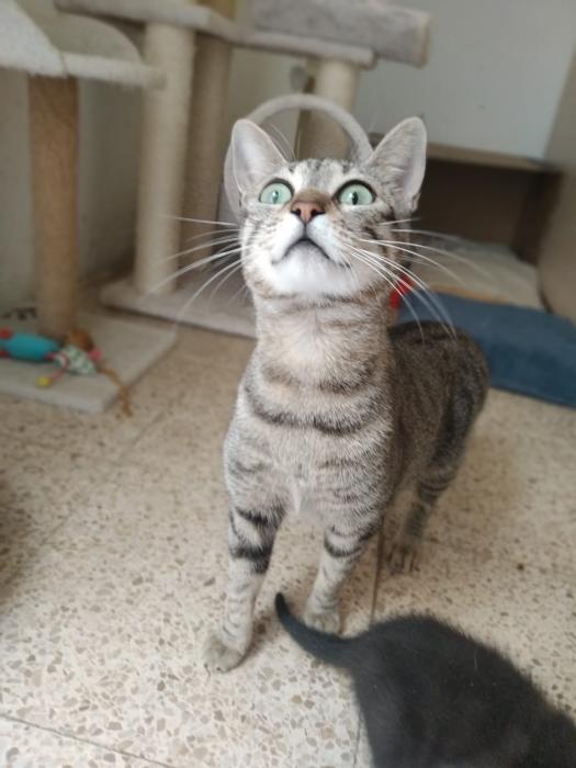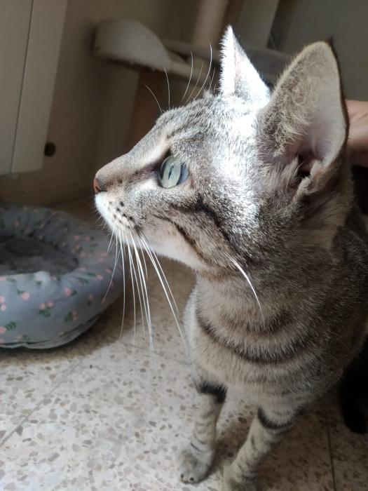 Soc la Mivi, una mare coratje. Em van rescatar en un estat bastant avançat de gestació per això vaig arribar a una casa d'acollida. Sempre he viscut en llibertat i per això vaig alerta i em guanya una mica la meva timidesa, però soc molt agraïda amb les persones que em cuiden i donen menjar i m'encanta que em facin mimitos.Els meus fills van néixer en un lloc segur i amb molt d'amor. Lamentablement, de vegades, hi ha complicacions que s'escapen de les nostres mans i dels veterinaris i 2 d'ells se'n van anar al cel dels gatets molt aviat. El Hani i el Kai són els meus terratrèmols, van créixer sans i forts i ja han trobat una família adoptiva que els cuidarà molt bé.Durant la meva lactància vaig adoptar al Rigodón, un nadó que es va quedar sense mami i jo no vaig poder negar-me a donar-li aixopluc i alimentar perquè sobrevisqués. Es va adaptar molt bé amb el Hani i el Kai i encara que es porten un mes de diferència és un trasto més que busca una llar amb un altre company felí.També és el meu moment de trobar una llar on viure tranquil·la i que em segueixin donant molts mimitos. M'adoptes?