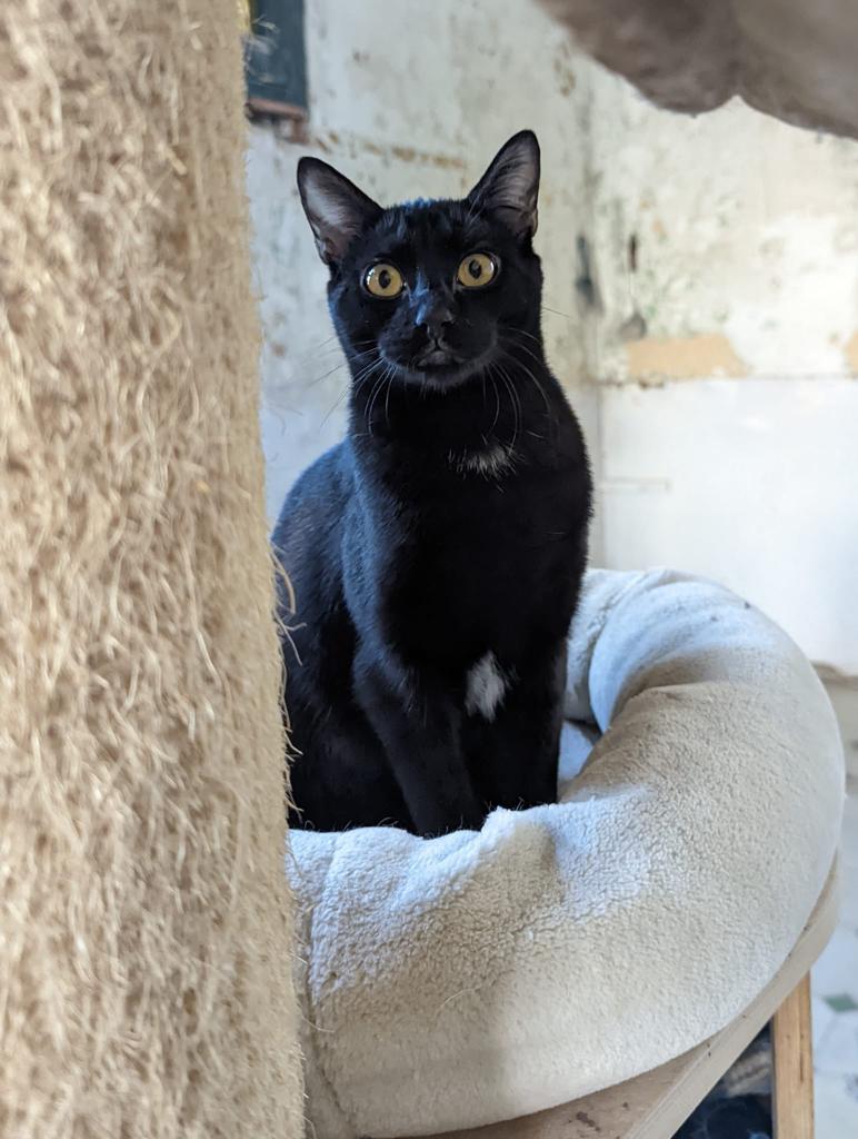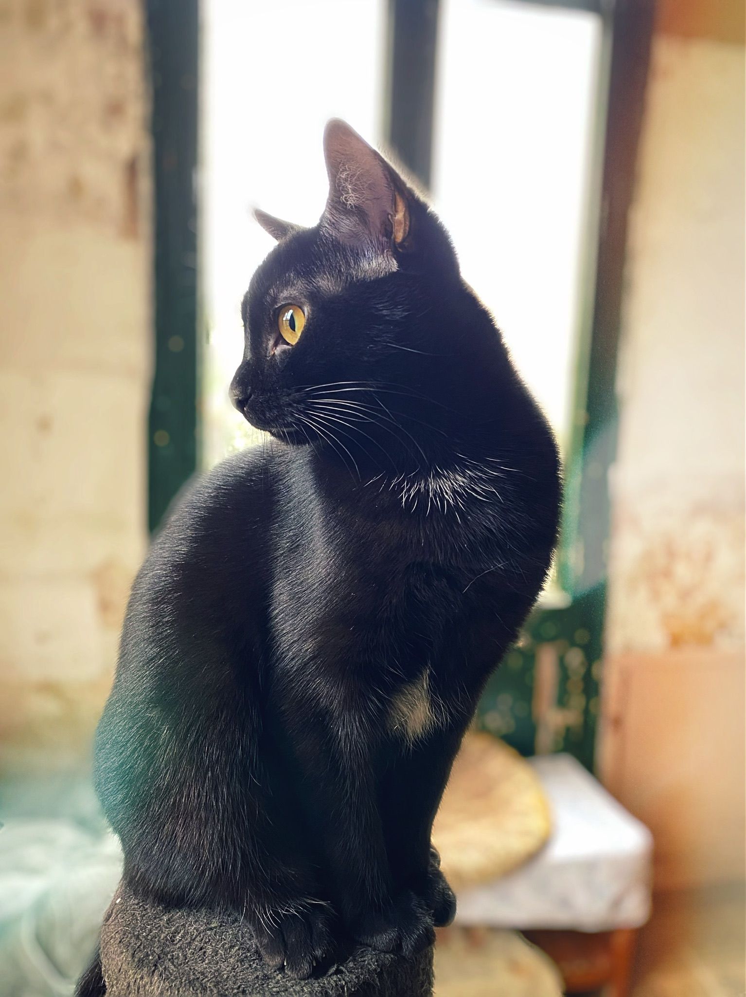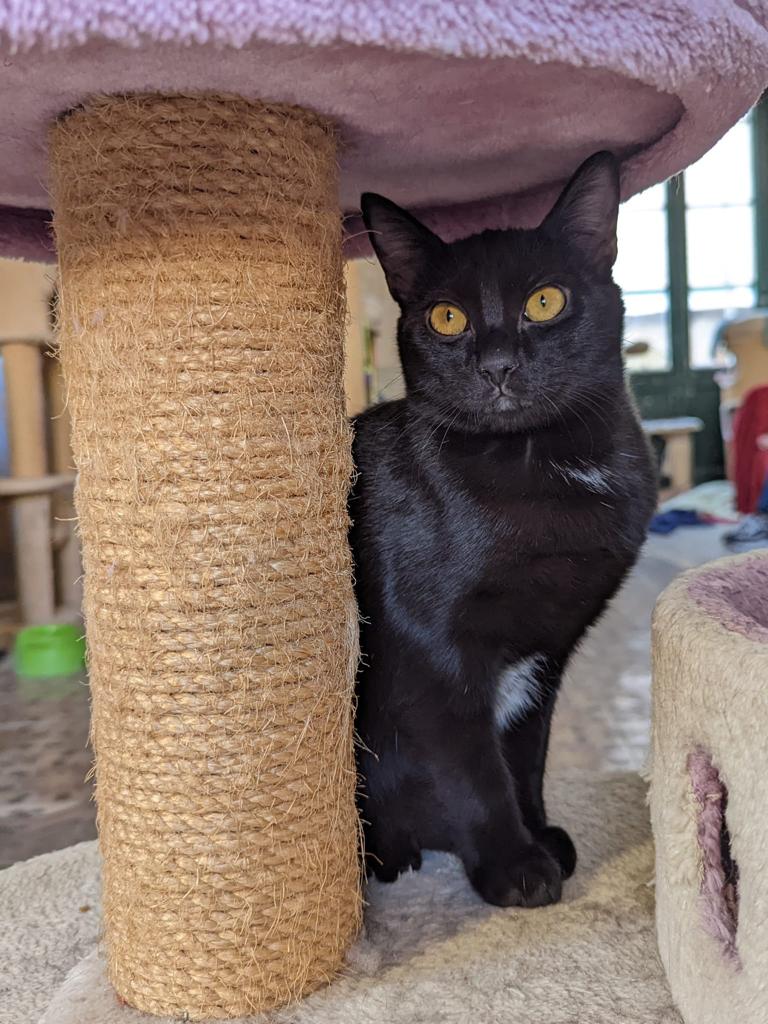 Holi, em dic Ninfa i sóc petiteta com una fada! Crec que he de ser màgica perquè sóc negreta amb la panxa blanca, no n'hi ha gaires com jo! Jo sóc una mica entremaliada, m'encanta jugar amb el plumero, demanar llauna i fer saltets. També m'agrada que em donis carinyos i cridar-te amb miaaaaaus a tota hora.