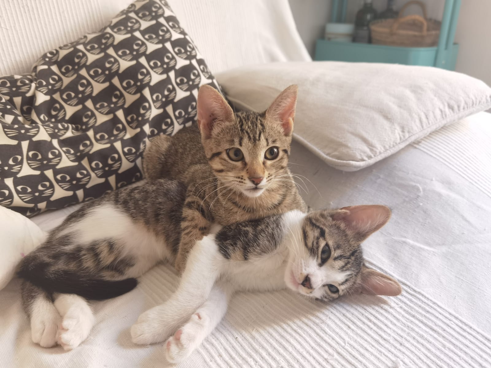 Sóc la Romy una gateta simpàtica i juganera, em van rescatar al costat de la meva germana Lucy amb tot just 15 dies de vida!No menjàvem soles i ens van donar biberó a casa d'acollida, però hem crescut sanes i fortes;)Mengem, dormim i juguem sempre alhora.Busquem una casa on puguem viure sempre juntes