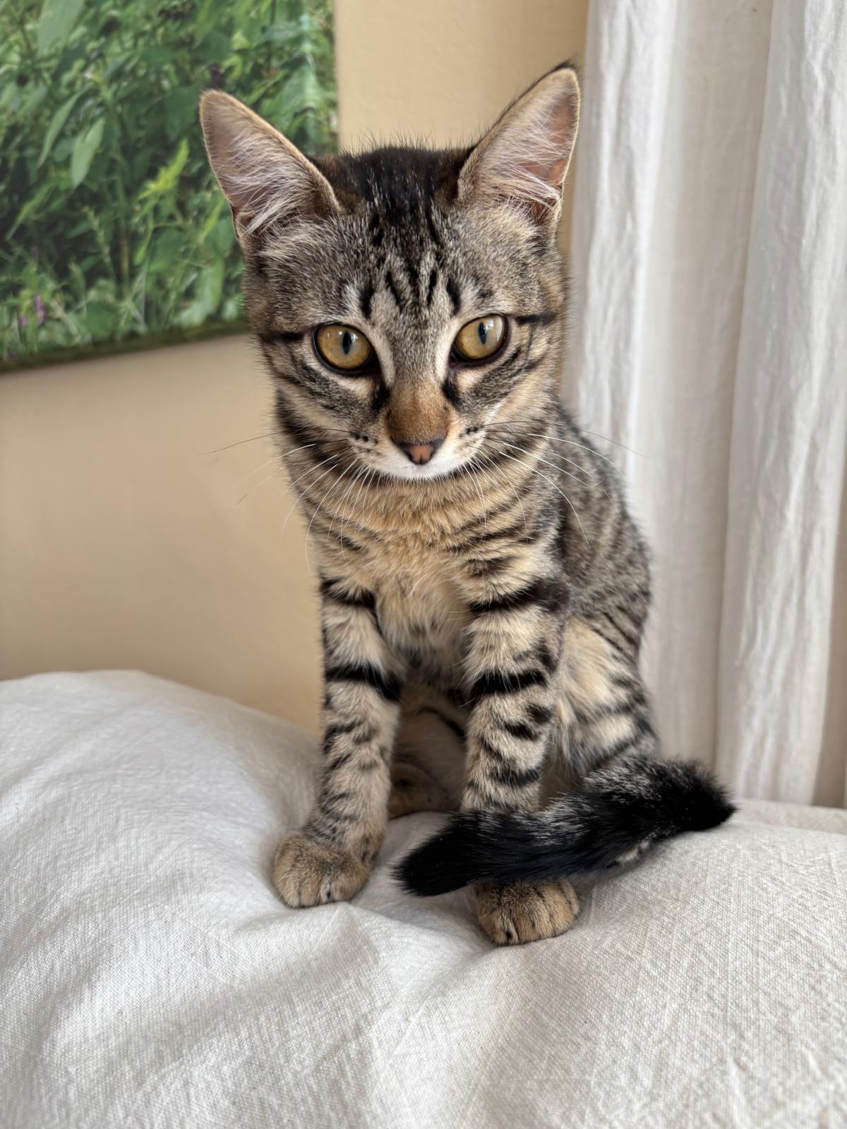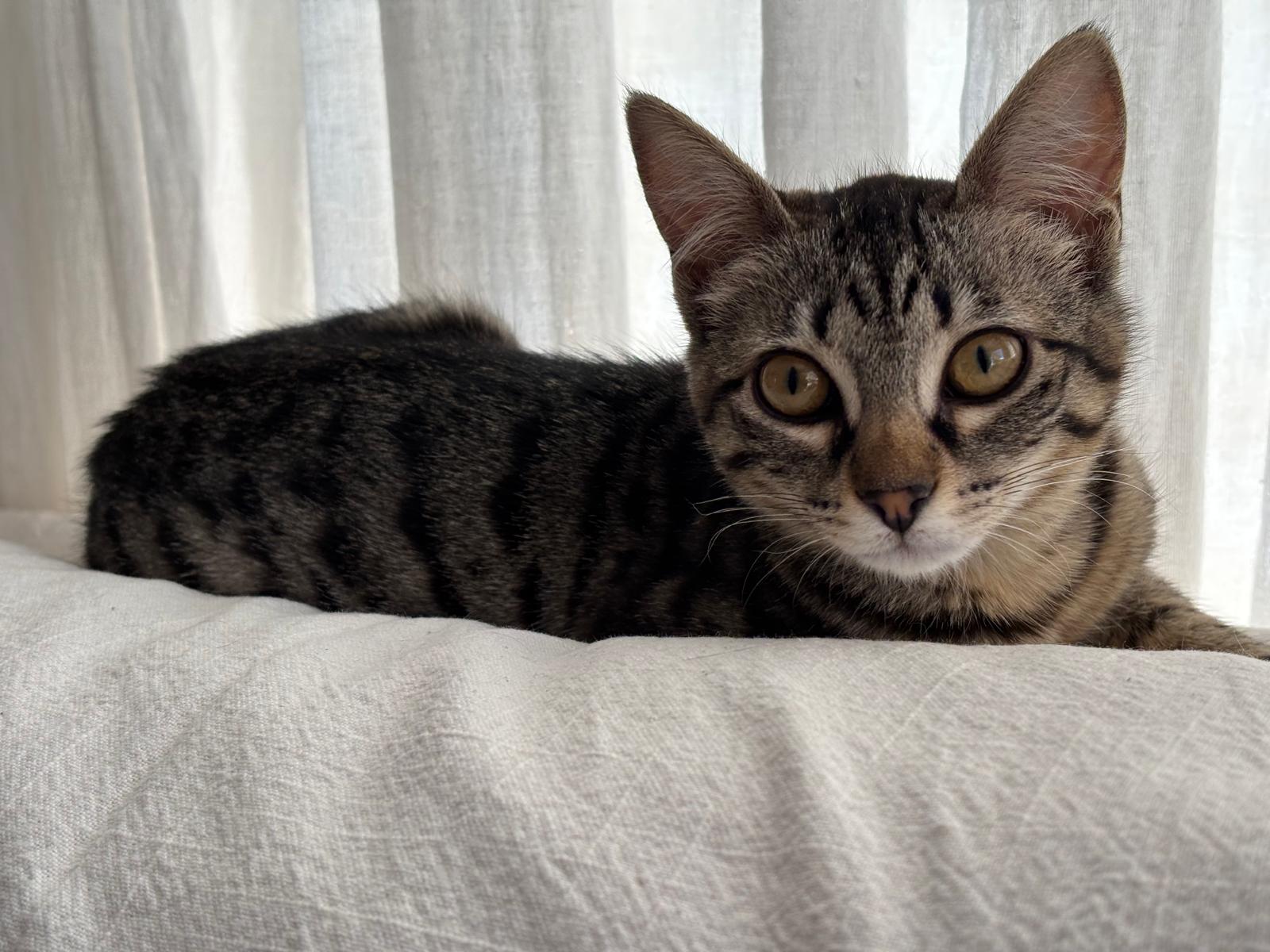 La Xúlia és la més atrevida del tàndem: activa, entremaliada i molt espavilada. Sempre està ideant noves maneres de jugar, explorar i fer alguna trapelleria. Té aquella energia viva que omple la casa i arrenca somriures.
